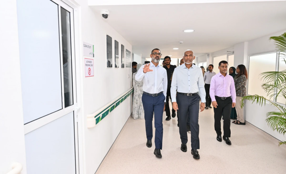ރައީސް މުއިއްޒު ސިއްހަތާ ބެހޭ ވަޒީރު އަބްދުﷲ ނާޒިމާއި މާލޭ ގްރޫޕް އޮފް ހޮސްޕިޓަލްސްގެ ސީއީއޯ އަބްދުރައްޒާގް ހަލީމްއާއެކު. ސިއްހީ ނިޒާމު ވަރުގަދަކޮށް ދެހާސްތިރީސްވަނަ އަހަރާ ހަމައަށްދާއިރު، ޓީބީ މަދުކުރެވިފައިވާ ގައުމަކަށް ހެދުމަށް ރާއްޖެއިން ވަނީ އަމާޒު ހިފާފައި. ފޮޓޯ؛ ރައީސް އޮފީސް
