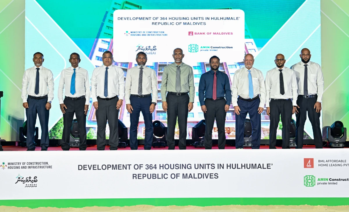 ސަރުކާރުގެ "ބޯހިޔާވަހިކަން އެންމެންނަށް" ސިޔާސަތުގެ ދަށުން ބޭންކް އޮފް މޯލްޑިވްސް (ބީ.އެމް.އެލް)ގެ ސަބްސިޑަރީއެއް ކަމުގައިވާ، ބީއެމްއެލް އެފޯޑަބަލް ލީޒިންގ ޕްރައިވެޓް ލިމިޓެޑާ ޙަވާލުކޮށްގެން ހުޅުމާލެ ފޭސް 1 ގައި ޢިމާރާތްކުރާ 364 ހައުސިންގ ޔުނިޓުގެ ބިންގާ އެޅުމާއި ޢަމަލީ މަސައްކަތް ފެށުމުގެ ރަސްމިއްޔާތު، ރައީސުލްޖުމްހޫރިއްޔާ ޑޮކްޓަރ މުޙައްމަދު މުޢިއްޒު ޝަރަފުވެރިކޮށްދެއްވައިފި އެވެ.