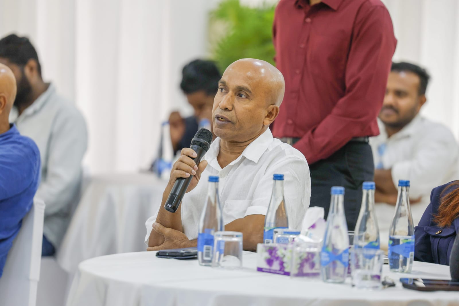 ކޮންގްރެސް ޕާޓީގެ ކެންޑިޑޭޓް މޫސާ ޢަލީ ޖަލީލް ވިޔަފާރިތަކާ ބައްދަލުކުރެއްވުން. ވިޔަފާރިތަކަށް ދިމާވެފައިވާ މައްސަލަތައް ހައްލުކުރުމުގެ ޕްލޭނެއް އޮތް ކަމަށް ޖަލީލް ވިދާޅުވި. ފޮޓޯ؛އެމްއެމްޓީވީ