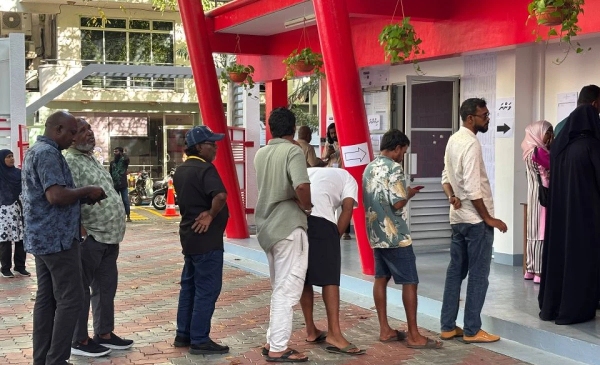 ވޯޓުލުމަށް ސަފުގައި ޖެހިގެން ބަޔަކު ތިބުން، ފޮޓޯ: ދަ ޕްރެސް