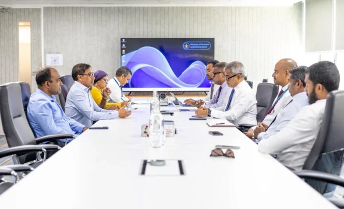 މެދުއިރުމަތީގެ މަސްރަޙަށް އަންނަމުންދާ ބަދަލުތަކުގެ ސަބަބުން ދިވެހިރާއްޖެއަށް ކުރާނެ އަސަރުތަކާ ގުޅޭގޮތުން މަޝްވަރާކުރެއްވުމަށްޓަކައި، މިނިސްޓަރ އޮފް ޓޫރިޒަމް އެންޑް އެންވަޔަރަންމަންޓް އޮނަރަބަލް ޠާރިޤް އިބްރާހީމް މޯލްޑިވްސް އެސޯސިއޭޝަން ފޯ ޓޫރިޒަމް އިންޑަސްޓްރީ (މަޓީ) އާއި ރާއްޖެއަށް ތެޔޮ އެތެރެކުރާ މައިގަނޑު ކުންފުނިތަކާ ބައްދަލުކޮށްފި އެވެ.