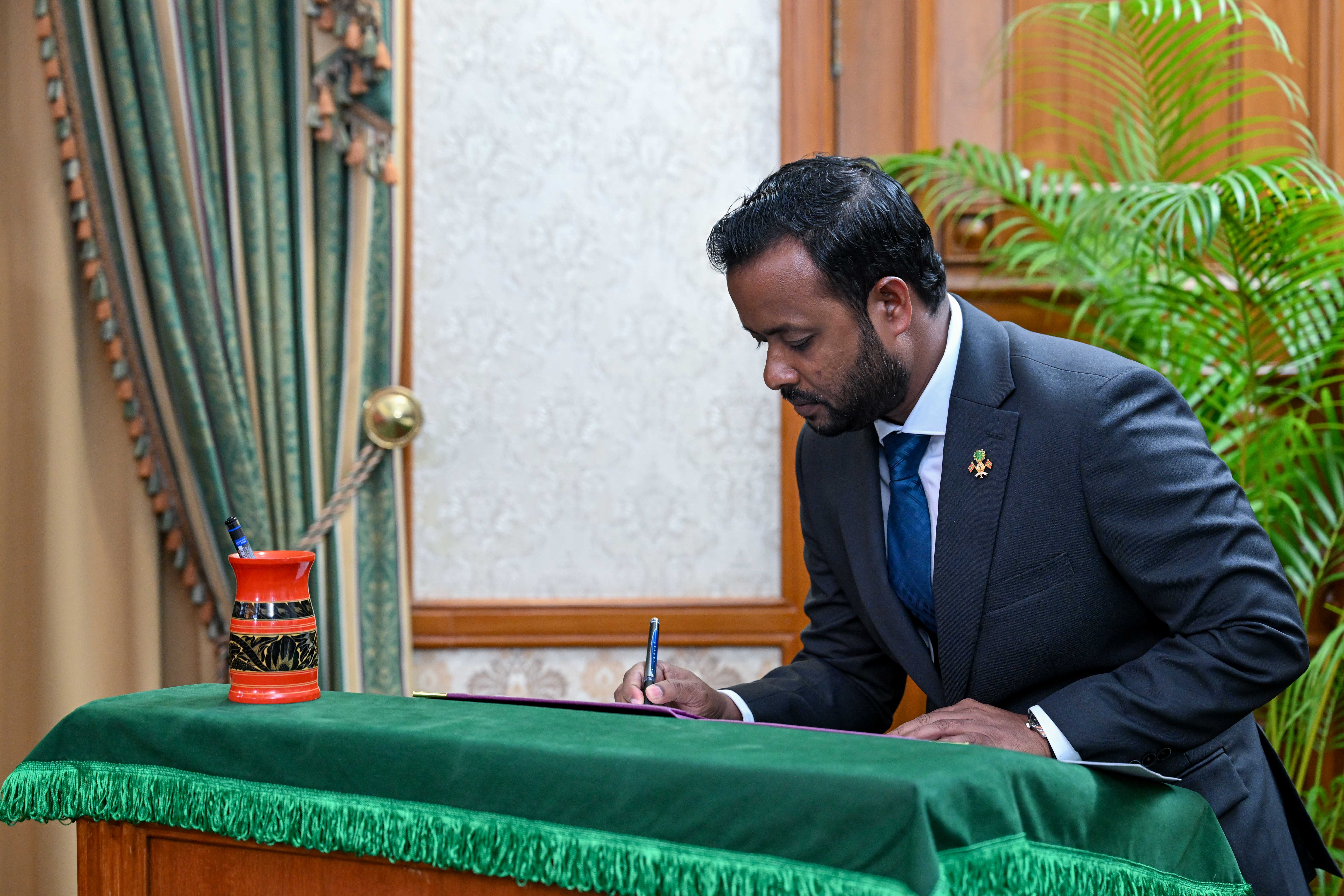 އޭގެ ފަހުން ވަޒީރުންގެ މަޖިލީހުގެ މެންބަރުންގެ ހުވާގެ އިޤުރާރުގައި ވަނީ ސޮއި ކުރައްވާފަ އެވެ.