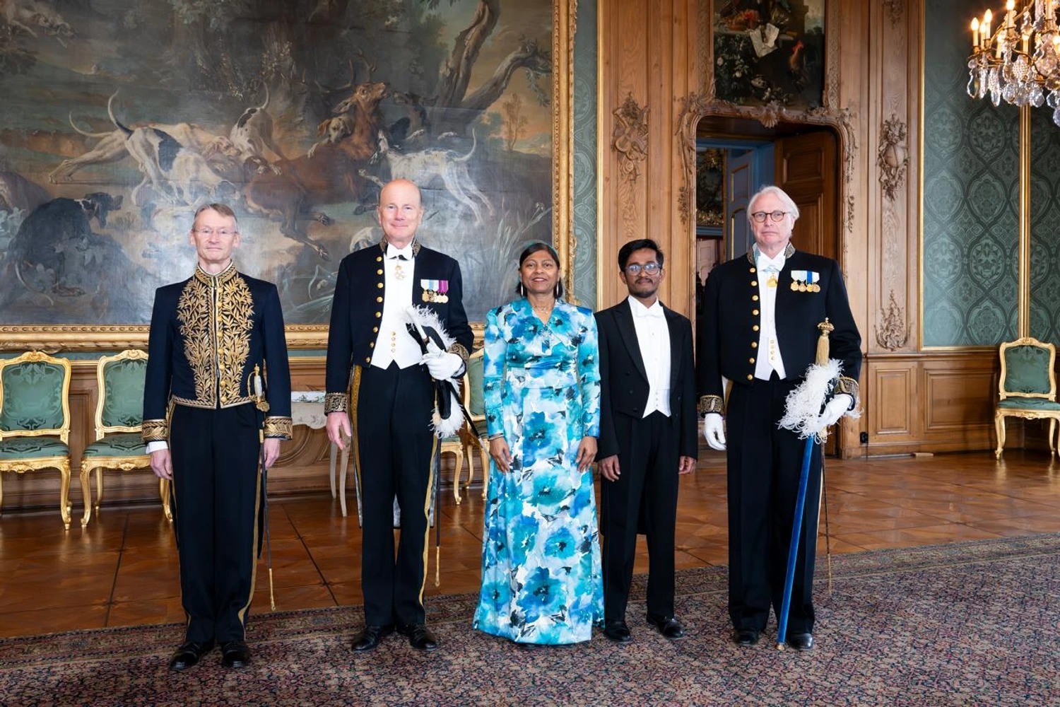 ރާއްޖެއިން ސްވިޑަންއަށް ކަނޑައަޅުއްވާފައިވާ ސަފީރު، އެމަނާގެ ފަތްކޮޅު ސްވިޑެންގެ ރަސްގެފާނަށް އެރުވުމުގެ ރަސްމިއްޔާތުގެ ތެރެއިން-- މިނިސްޓްރީ އޮފް ފޮރިން އެފެއާޒް