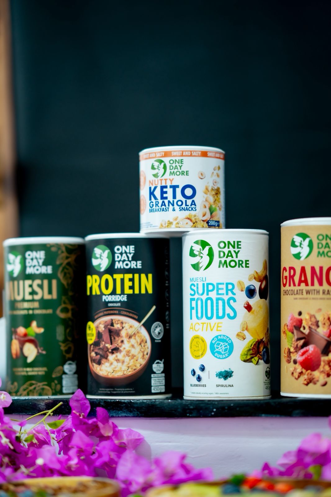 'ހެލްތީ، ނެޗުރަލް، ޕްރިމިއަމް ބްރޭކްފާސްޓް ބްރޭންޑް' އެއްގެ ގޮތުގައި މަޝްހޫރު ވެފައިވާ "ވަން ޑޭ މޯ" ގެ އުފެއްދުންތަކުގެ ތެރޭގައި ގްރެނޯލާ، މޫސްލީ އަދި އޯޓްމީލް، ޕޮރިޖް އަދި ޕްރޮޓީން އެކުލެވޭ ސީރިއަލް ފަދަ ތަފާތު ބާވަތްތައް ހިމެނެ އެވެ.