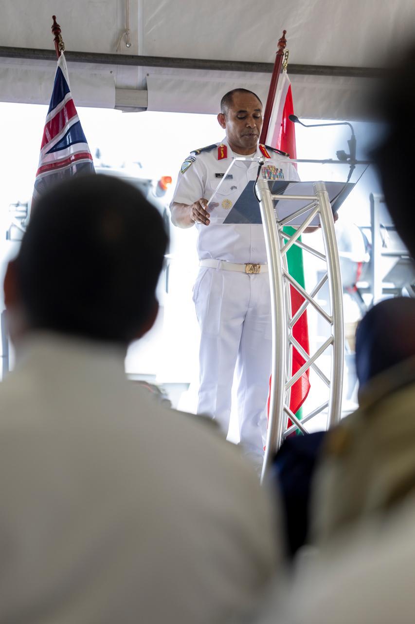މި ރަސްމިއްޔާތު ޝަރަފްކޮށްދެއްވީ އޮސްޓްރޭލިއާގެ ރޯޔަލް ނޭވީގެ ރިއަރ އެޑްމިރަލް ބްރެޓް ސޮންޓާ އަދި އެމް.އެން.ޑީ.އެފް ކޯސްޓްގާޑުގެ ކޮމަންޑަންޓް ބްރިގޭޑިއަރ ޖެނެރަލް މުޙައްމަދު ސަލީމް އެވެ. ބްރިގޭޑިއަރ ޖެނެރަލް ސަލީމްގެ ވާހަކަފުޅުގައި، މިއީ ރާއްޖޭގެ ކަނޑުގެ ސަލާމަތްތެރިކަން ކަށަވަރުކުރުމަށް ލިބުނު އަގުނުކުރެވޭ ފަދަ އެހީއެއްކަން ފާހަގަކުރައްވައި، އޮސްޓްރޭލިއާ ސަރުކާރަށް ވަނީ ޝުކުރު އަދާކުރައްވާފައެވެ. އަދި، ރޯޔަލް އޮސްޓްރޭލިއަން ނޭވީގެ ރިއަރ އެޑްމިރަލް ބްރެޓް ސޮންޓާގެ ވާހަކަފުޅުގައި، ސަރަހައްދީ ސަލާމަތީ ގޮންޖެހުންތަކާ ކުރިމަތިލުމުގައި ދެ ގައުމުގެ ބަދަހި ގުޅުމުގެ މުހިންމުކަން ފާހަގަކުރެއްވިއެވެ.