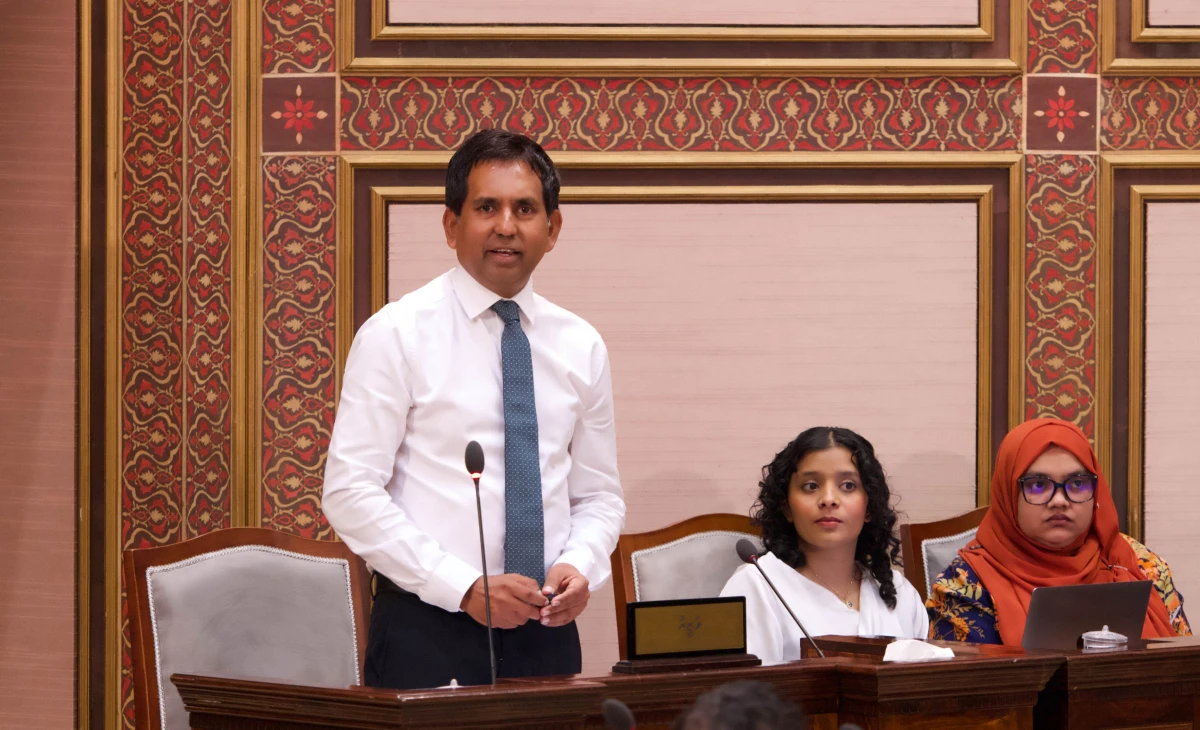 ރައްޔިތުންގެ މަޖިލީހުގައި މެންބަރުންގެ ސުވާލުތަކަށް އިގުތިސާދީ ތަރައްގީއާ ބެހޭ ވަޒީރު މުހައްމަދު ސައީދު ޖަވާބުދެއްވަނީ، ފޮޓޯ: ރައްޔިތުންގެ މަޖިލީސް