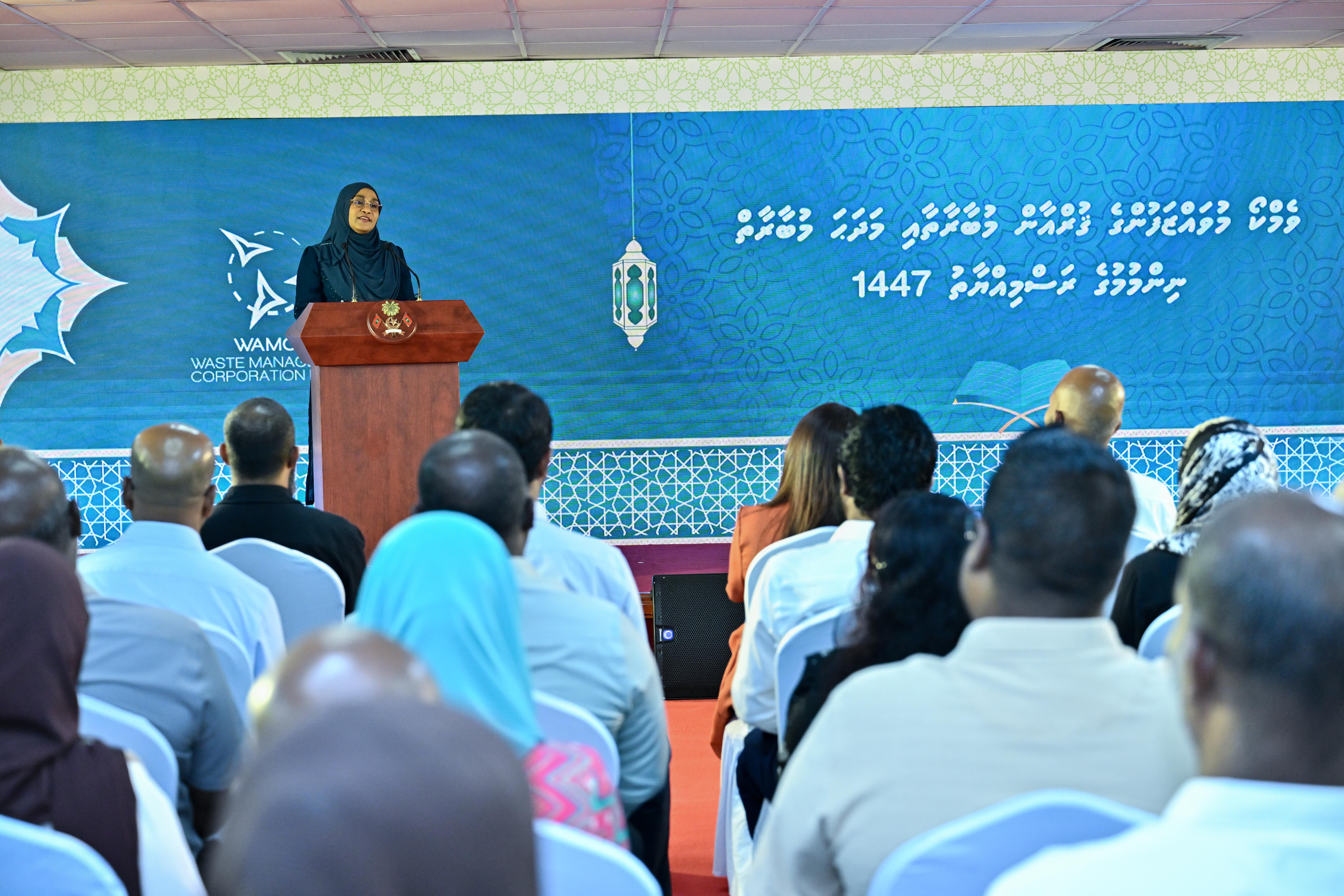ރައީސުލްޖުމްހޫރިއްޔާގެ އަނބިކަނބަލުން ސާޖިދާ މުޙައްމަދު، ވޭސްޓް މެނޭޖްމަންޓް ކޯޕަރޭޝަން ލިމިޓެޑް، ވެމްކޯ މުވައްޒަފުންގެ ދެވަނަ ޤުރްއާން އަދި މަދަހަ މުބާރާތް 1447 ނިންމުމުގެ ރަސްމިއްޔާތު ޝަރަފްވެރިކޮށްދެއްވީ 22 އޭޕްރީލް 2026 ވަނަ ދުވަހުގެ ރޭ.