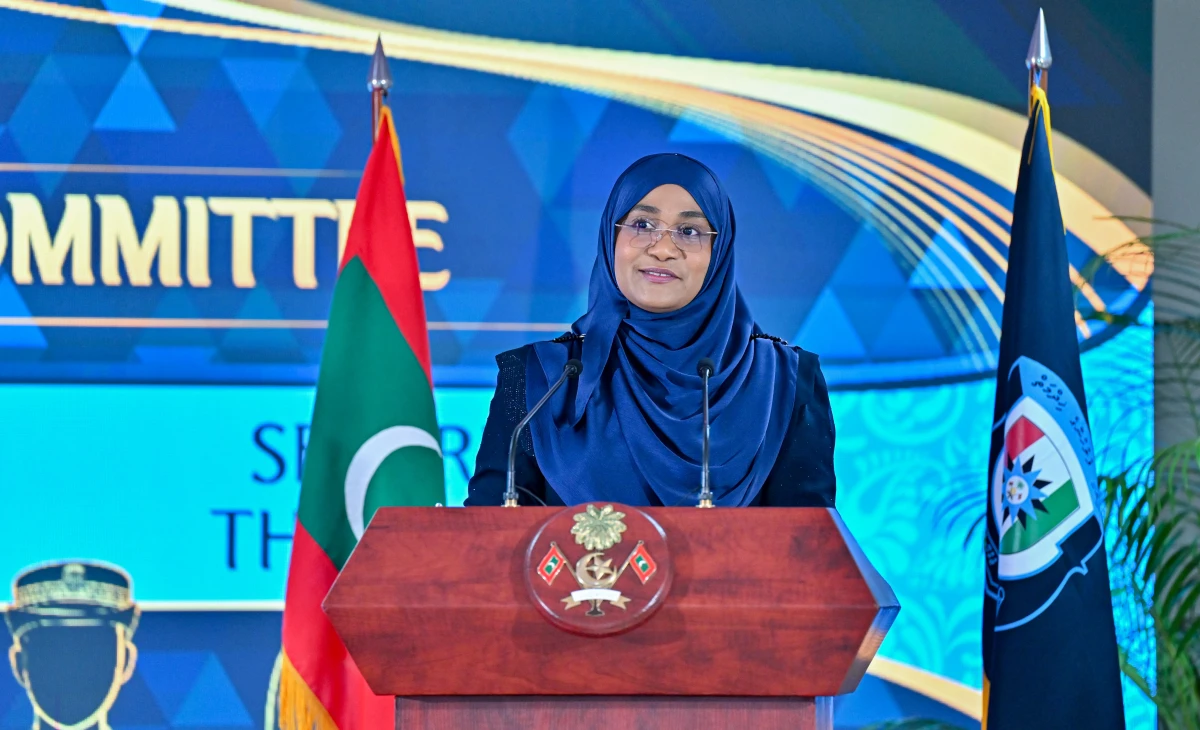 އެކަމަނާ މިފަދައިން ވިދާޅުވީ، 2026 އިން 2028 އަށް ޢައްޔަންކުރެއްވި "މޯލްޑިވްސް ވިމެން އިން ޕޮލިސިންގ" ކޮމިޓީ އިފްތިތާޙްކޮށްދެއްވުމުގެ ރަސްމިއްޔާތު ޝަރަފުވެރިކޮށްދެއްވާ، ވާހަކަފުޅުދައްކަވަމުންނެވެ. އިސްކަންދަރު ކޮށީގައި މިރޭ އޮތް ރަސްމިއްޔާތަށް ރައީސުލްޖުމްހޫރިއްޔާގެ އަނބިކަނބަލުން ވަޑައިގަތުމާއެކު، އެކަމަނާގެ ޝަރަފުގައި އޮނަރ ގާޑެއް ވަނީ އަރުވާފައެވެ.