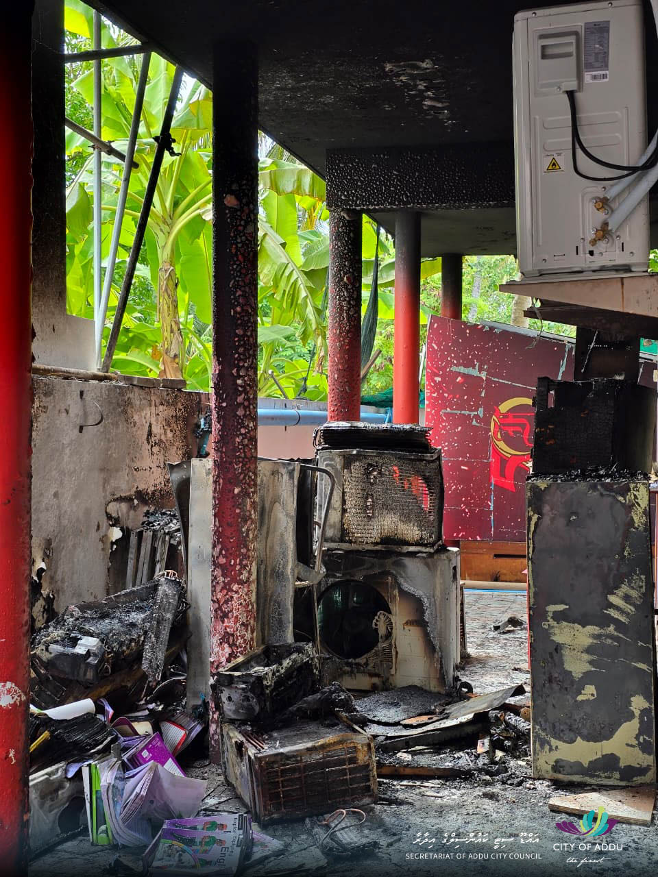 އައްޑޫ ސިޓީ ފޭދޫ ސްކޫލްގައި ހިނގި އަލިފާނުގެ ހާދިސާ ނިއްވާލައިފި-- ފޮޓޯ: އެމްއެންޑީއެފް