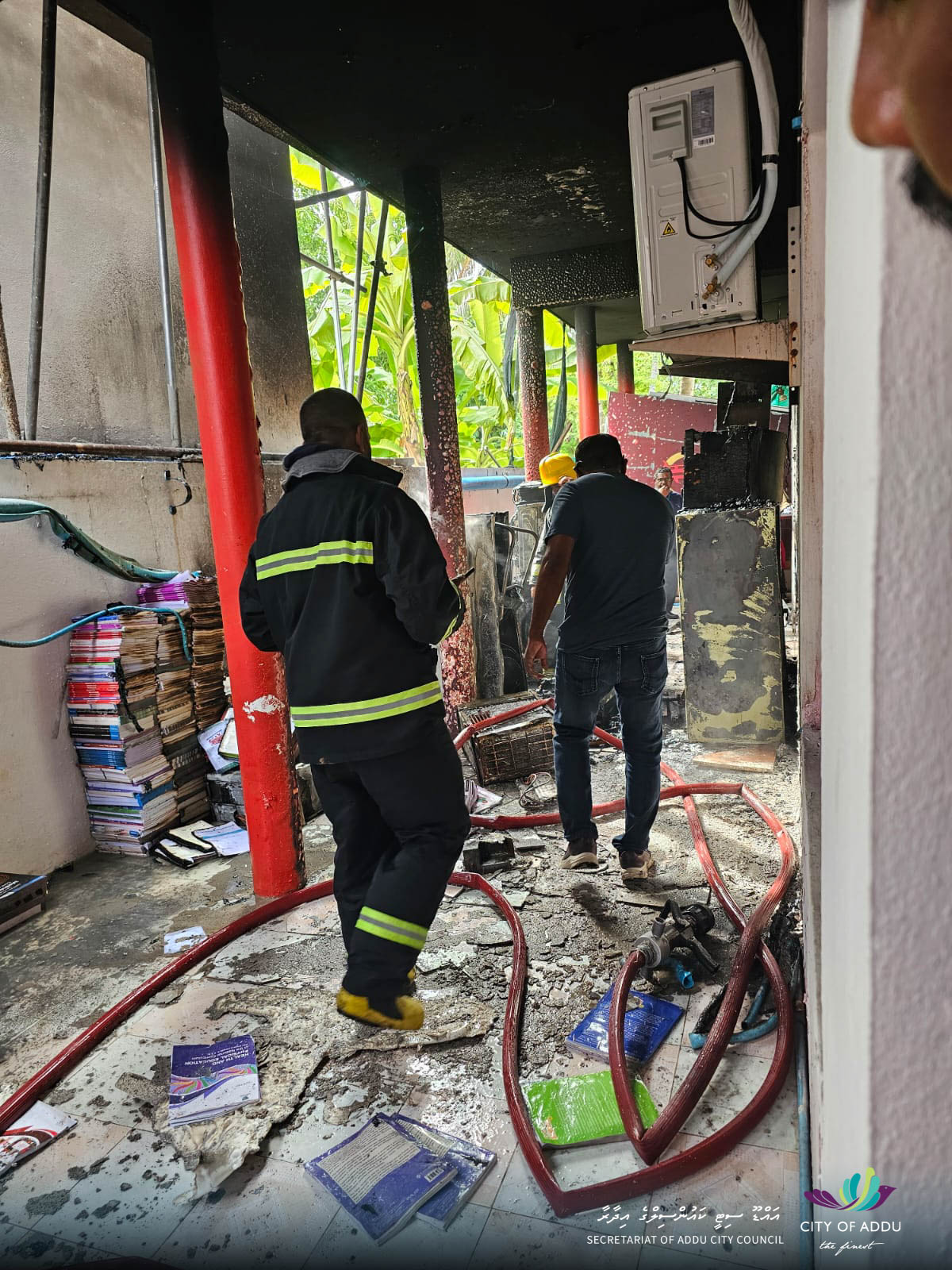އައްޑޫ ސިޓީ ފޭދޫ ސްކޫލް ލައިބްރަރީ ބޭރުގައި ރޯވި އަލިފާން، އެމްއެންޑީއެފް ސަދަން އޭރިއާ ކޮމާންޑް، ހިތަދޫ ފަޔަރ ސްޓޭޝަނުން ނިއްވާލައިފި އެވެ.