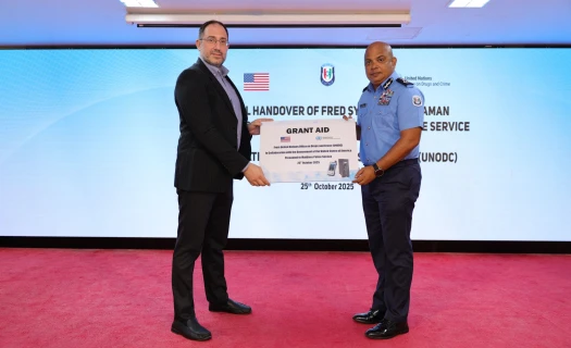 ސްޓެލްކޯ އިން މުބާރާތުގެ ޓްރޮފީއާއެކު. --ފޮޓޯ: އޮފީސް ލީގު / އިމޭޖަސް.އެމްވީ