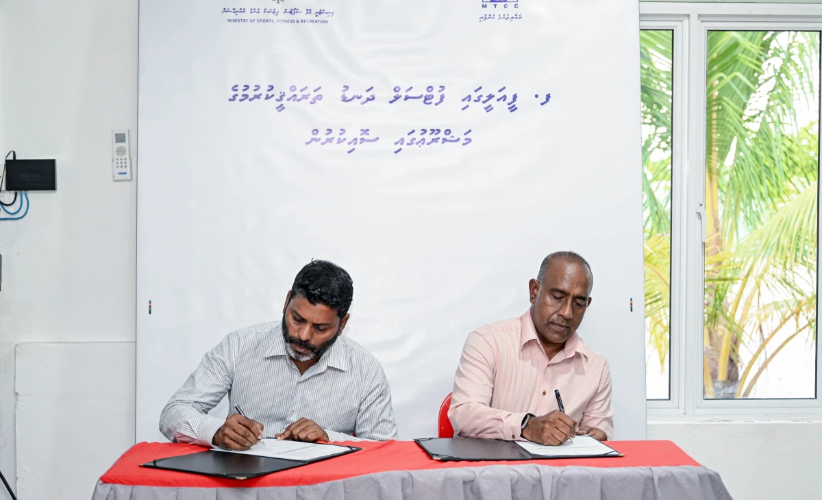 ފީއަލީ ފުޓްސަލް ކޯޓު ތަރައްގީކުރުމުގެ އެއްބަސްވުމުގައި ސޮއިކުރުން، ފޮޓޯ: ރައީސް އޮފީސް