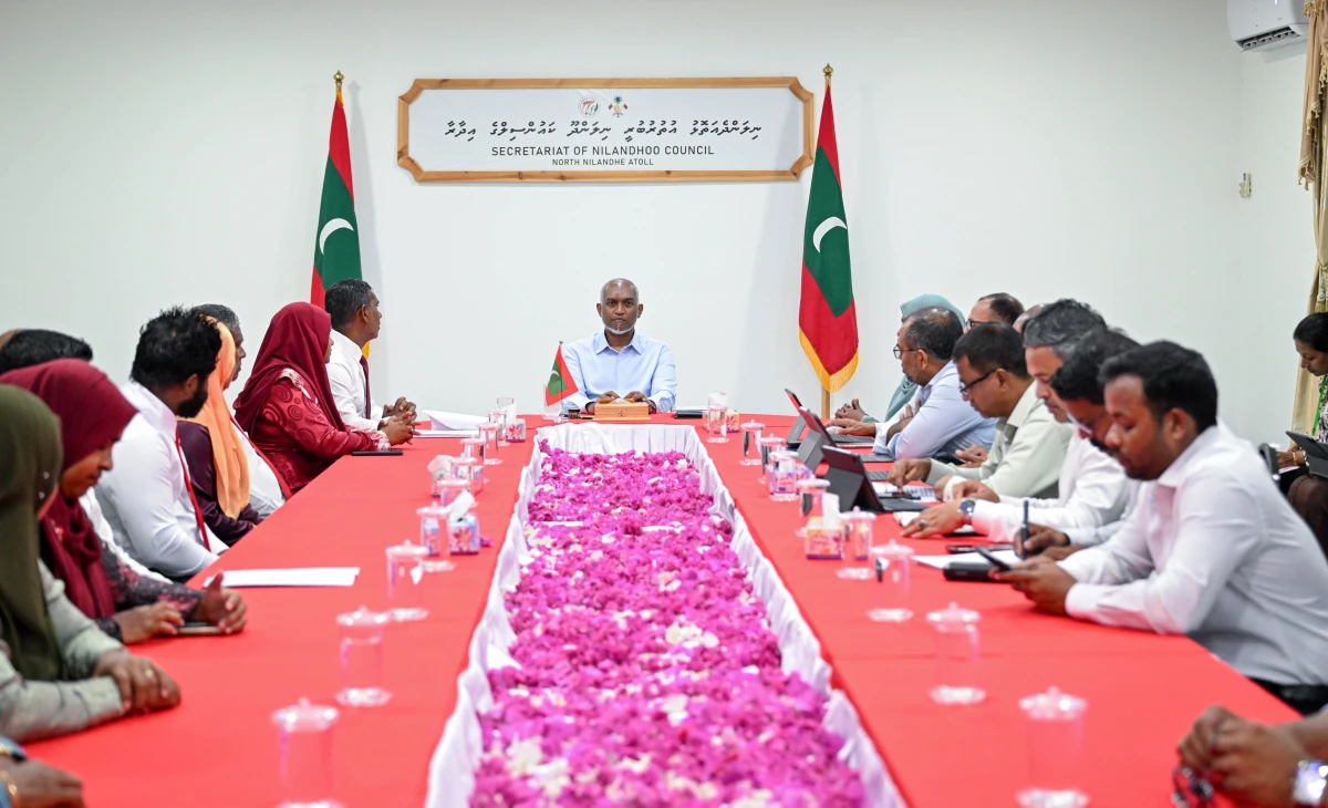 ރައީސުލްޖުމްހޫރިއްޔާ ޑރ. މުޙައްމަދު މުޢިއްޒު, ނިލަންދެއަތޮޅު އުތުރުބުރީ ނިލަންދޫ ކައުންސިލް މެންބަރުންނާއި އަންހެނުންގެ ތަރައްޤީއަށް މަަަސައްކަތް ކުރާ ކޮމެޓީގެ މެންބަރުންނާއި އަދި ރަށުގެ ބައެއް މުއައްސަސާތަކުގެ އިސްވެރީންނާއި ބައްދަލު ކުރައްވައި ރައްޔިތުންނަށް އެންމެ މުހިންމު ކަންކަމާ ގުޅޭގޮތުން މަޝްވަރާ ކުރައްވައިފި އެވެ.