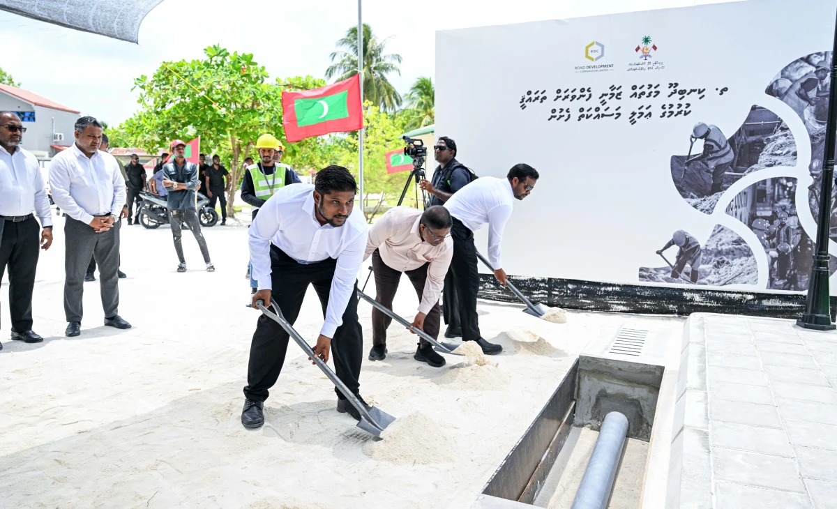 ކިނބިދޫ މަގުހެދުމުގެ މަޝްރޫއުގެ އަމަލީ މަސައްކަތް ފެށުމުގެ ތެރެއިން، ފޮޓޯ: ރައީސް އޮފީސް