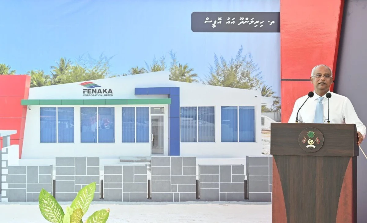 ހިރިލަންދޫ ފެނަކަ އޮފީސް ހުޅުވުމުގެ ރަސްމިއްޔާަތުގައި ރައީސް ސޯލިހު ވާހަކަދައްކަވަަނީ، ފޮޓޯ: ރައީސް އޮފީސް
