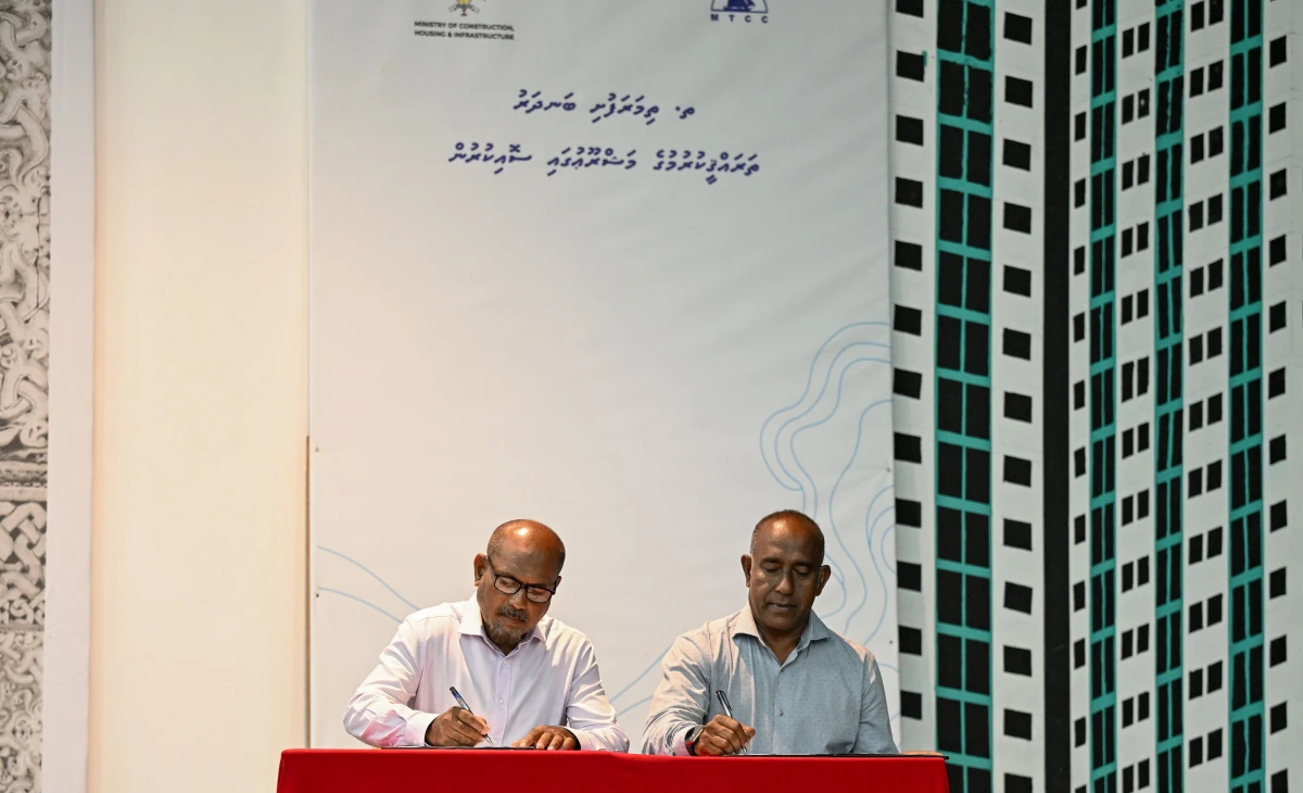 ތިމަރަފުށީ ބަނދަރުގެ އެއްބަސްވުމުގައި ސޮއިކުރަނީ، ފޮޓޯ: ރައީސް އޮފީސް