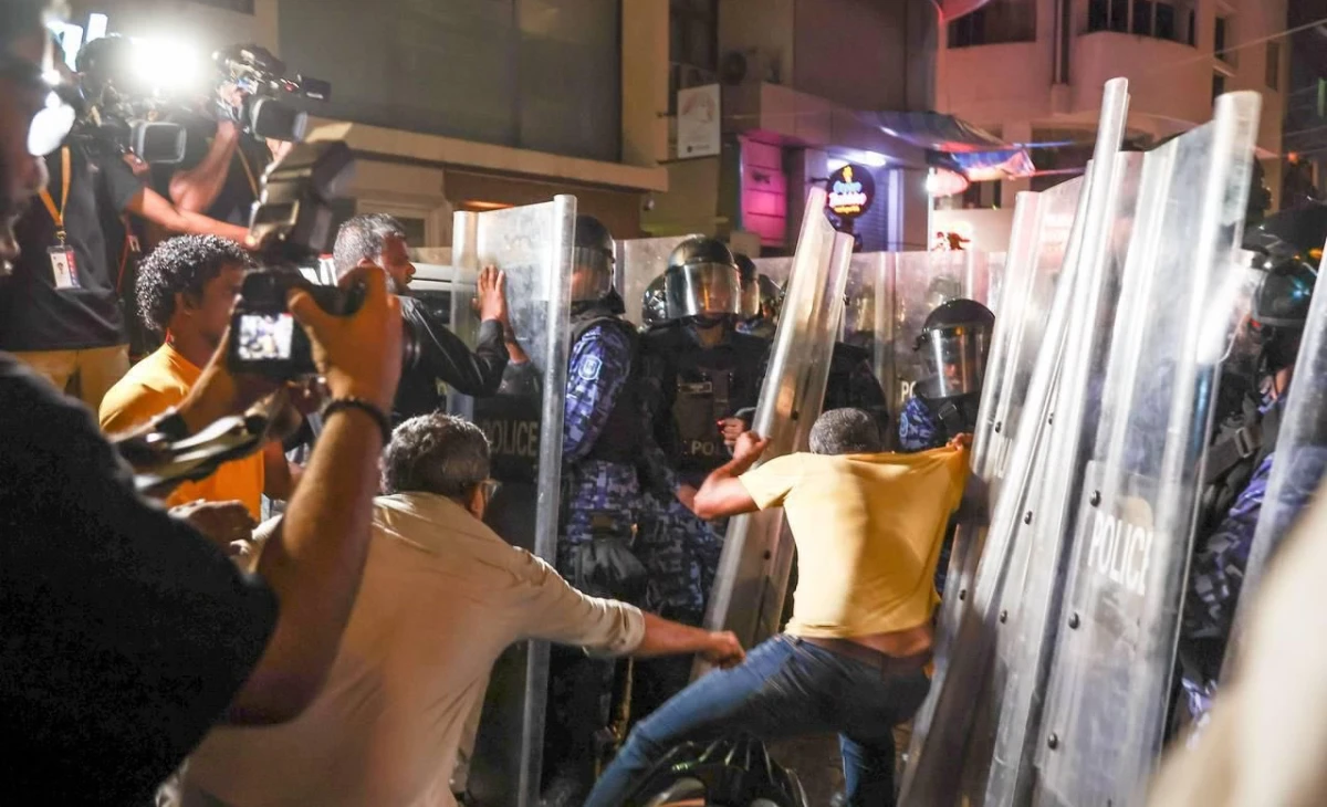 އަދި މި ސަރުކާރުގައި އެމްޑީޕީންވެސް މިދެންނެވި އުސޫލުގެ ތެރެއިން ބޮޑު ހިނގައިލުމެއް ބާއްވައިފިއެވެ. ސަރުކާރުން އެކަމަށް ޖާގަދިނެވެ. ފުލުހުން އެ ދުވަހު ތިބީ އެ އެއްވުމުގައި ބައިވެރިންނަށް އެހީތެރިވެ، ރައްކާތެރިކަން ޔަގީންކޮށްދޭ ފާރަވެރިންގެ ގޮތުގައެވެ.