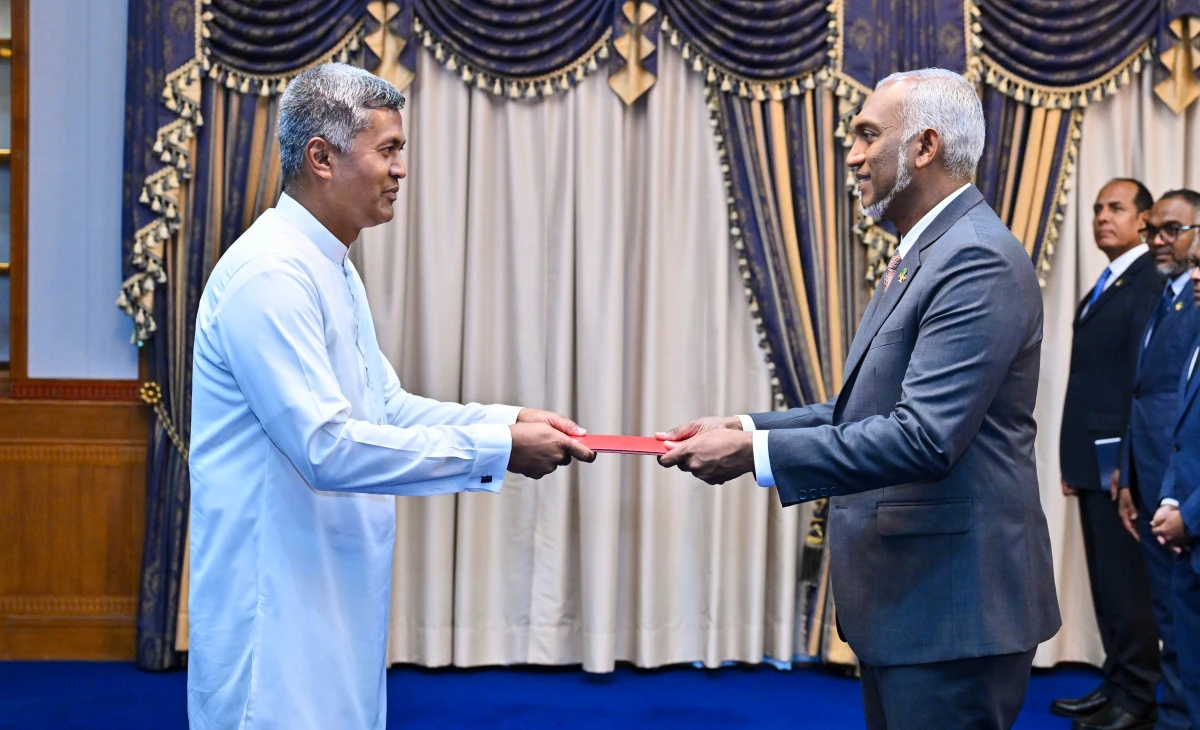 ސްރީލަންކާ ސަރުކާރުން ދިވެހިރާއްޖެއަށް ކަނޑައެޅުއްވި އައު ސަފީރު، މުޙައްމަދު ރިޒްވީ ޙަސަން، ރައީސުލްޖުމްހޫރިއްޔާ ޑޮކްޓަރ މުޙައްމަދު މުޢިއްޒުއަށް، ސަފީރުކަމުގެ ފަތްކޮޅު އަރުވައިފި އެވެ.