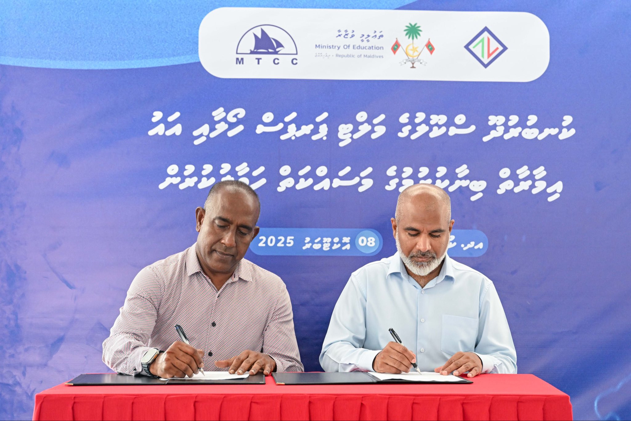 ކުނބުރުދޫ ސްކޫލް އިމާރާތް އެޅުމަށް އެމްޓީސީސީއާއެކު ސޮއިކުރުން. ފޮޓޯ: ރައީސް އޮފީސް