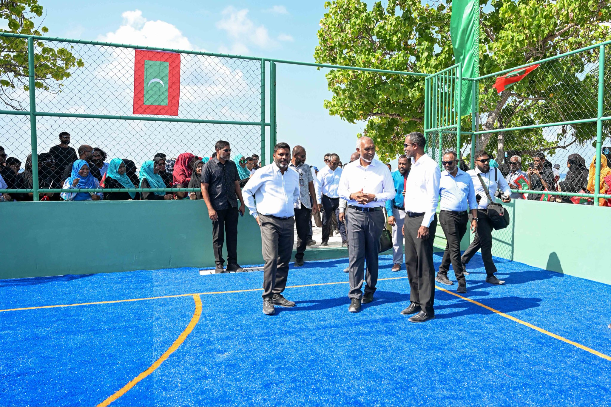ކުނބުރުދޫގައި ހުޅުވި ސްޕޯޓްސް ކޯޓު ރައީސުލްޖުމްހޫރިއްޔާ ބައްލަވާލައްވަނީ. ފޮޓޯ: ރައީސް އޮފީސް