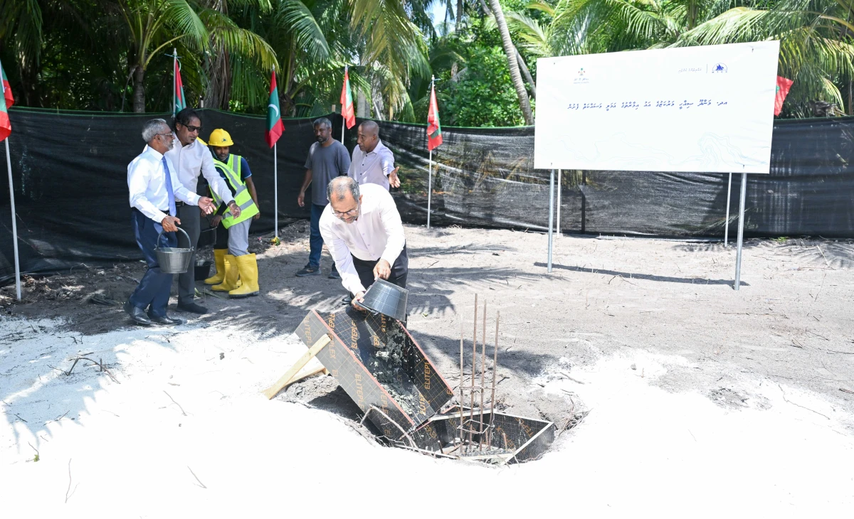 މަންދޫގައި އަލަށް އިމާރާތްކުރާ ޞިއްޙީ މަރުކަޒުގެ ބިންގާ އެޅުން. ފޮޓޯ: ރައީސް އޮފީސް