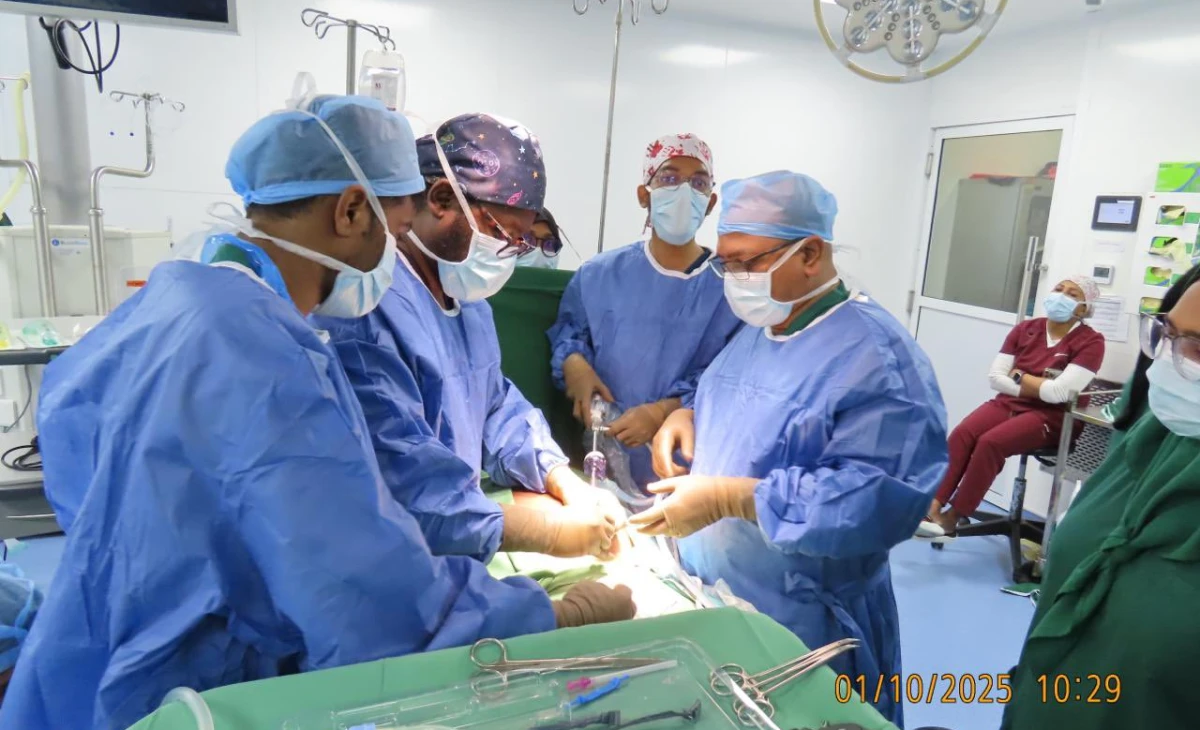 "..މި އޮކްޓޯބަރު މަހުގެ ކުރީކޮޅު، ފުރަތަމަ ޓެންކޮފް ޕެރިޓޯނިއަލް ޑަޔަލިސިސް ކެތީޓަރު ލެއްވުމުގެ ކާމިޔާބު އޮޕަރޭޝަނެއް ކުރެވުނު. މި އޮޕަރޭޝަން ކުރިއަށް ގެންދިޔައީ ސަރޖަރީ، ޔޫރޮލޮޖީ، އެނެސްތީސިއާ އަދި ނެފްރޮލޮޖީގެ ދާއިރާތަކުން ތަމްރީނު ލިބިފައިވާ ޚާއްޞަ ދިވެހި ޑޮކްޓަރުންގެ ޓީމަކުން. މިހާރު މި ޚިދުމަތާ ގުޅުންހުރި އިތުރު ތަމްރީނު ޕްރޮގްރާމްތައް އައިޖީއެމްއެޗްގައި ކުރިއަށްދޭ," ފުރަތަމަ އޮަޕަރޭޝަން ކުރާ މަންޒަރު ފެންނަ ބައެއް ފޮޓޯތަކާއެކު ޙަލީމް ކުރެއްވި ޕޯސްޓެއްގައި ވިދާޅުވި އެވެ.