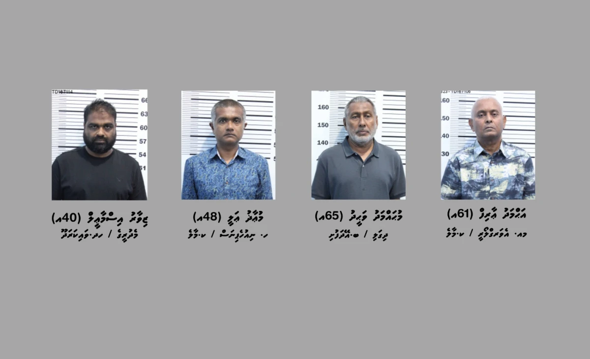 މި މައްސަލައާ ގުޅިގެން ހައްޔަރު ކޮށްފައިވަނީ ނޫރަލީގެ / ހދ.ވައިކަރަދޫ، އަޙްމަދު ޝަހީމް (42އ) އާއި ޗާނދަނީގެ / ސ.ހިތަދޫ، ޙުސައިން ސާމިޙު (35އ) އާއި ހ. ރުމޭނިޔާ / މާލެ، އަޙްމަދު ފިރުސާން (35އ) އެވެ.