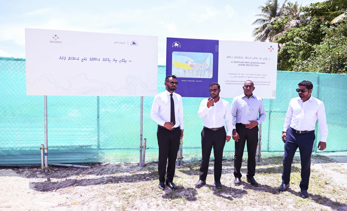 ދިއްފުށީ ބިން ހިއްކުމުގެ ޢަމަލީ މަސައްކަތް ފެށުން. ފޮޓޯ: ރައީސް އޮފީސް