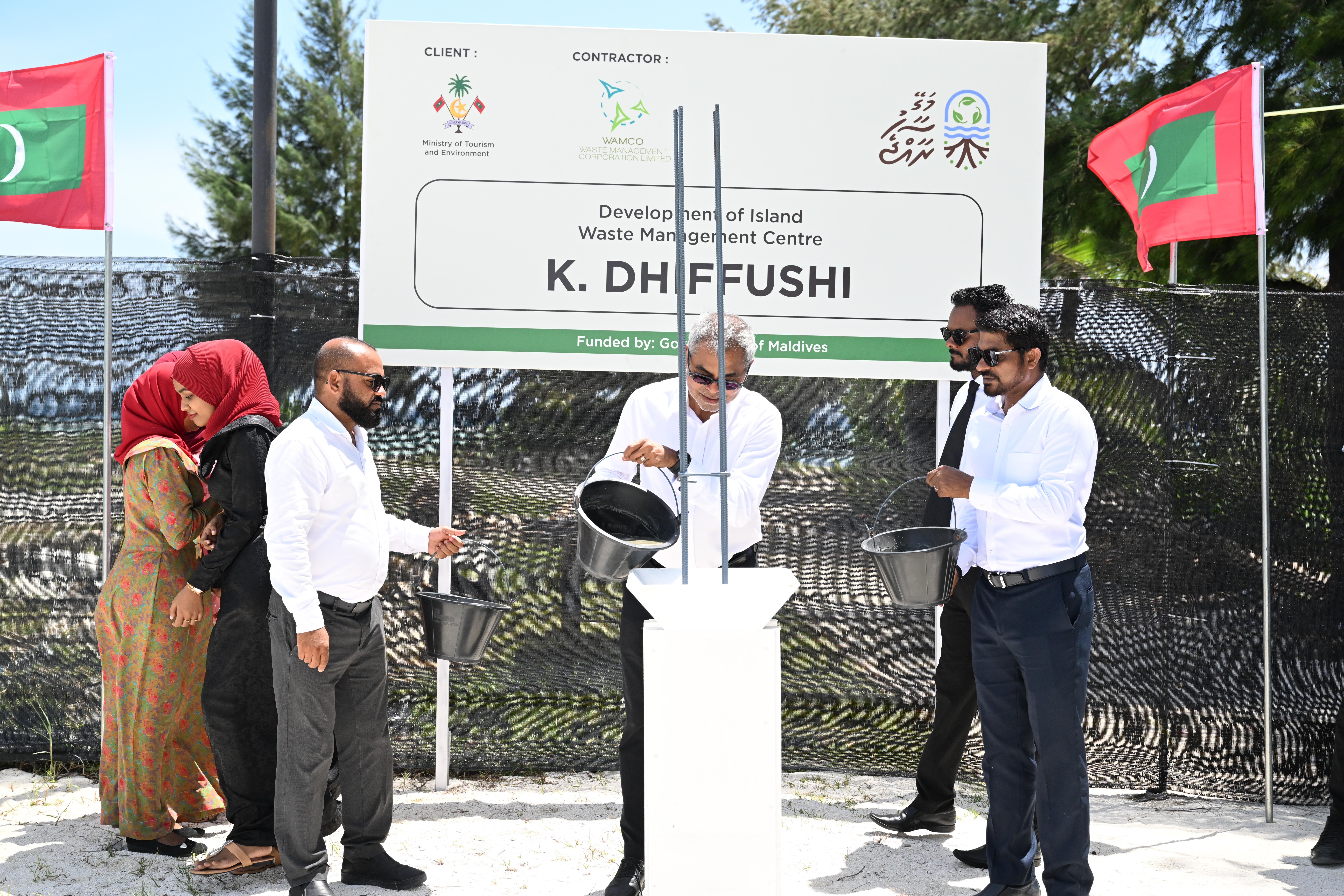 ދިއްފުށީގެ ކުނި މެނޭޖްކުރާ މަރުކަޒުގެ ބިންގާ ވަޒީރު އަޅުއްވައިދެއްވަނީ. ފޮޓޯ: ރައީސް އޮފީސް