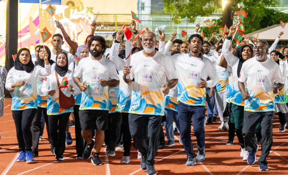 މިނިސްޓްރީ އޮފް ހެލްތު އަދި، މިނިސްޓްރީ އޮފް ސްޕޯރޓްސް ފިޓްނަސް އެންޑް ރިކްރިއޭޝަން ގުޅިގެން އިއްޔެއާއި މިއަދު މާލޭ އެކުވެނި ޓްރެކްގައި ކުރިއަށްގެންދިޔަ މި ދުވުމަކީ، ދުންފަތުގެ ނުރައްކަލުން ރާއްޖެ ސަލާމަތް ކުރުމާއެކު، ދުޅަހެޔޮ އަދި ހަރުދަނާ މުޖުތަމައެއް ބިނާކުރުމަށް ސަރުކާރުން ކުރަމުން އަންނަ މަސައްކަތްތަކަށް ހޭލުންތެރިކުރުމަށް ކުރިއަށްގެންދިޔަ ހަރަކާތެކެވެ.