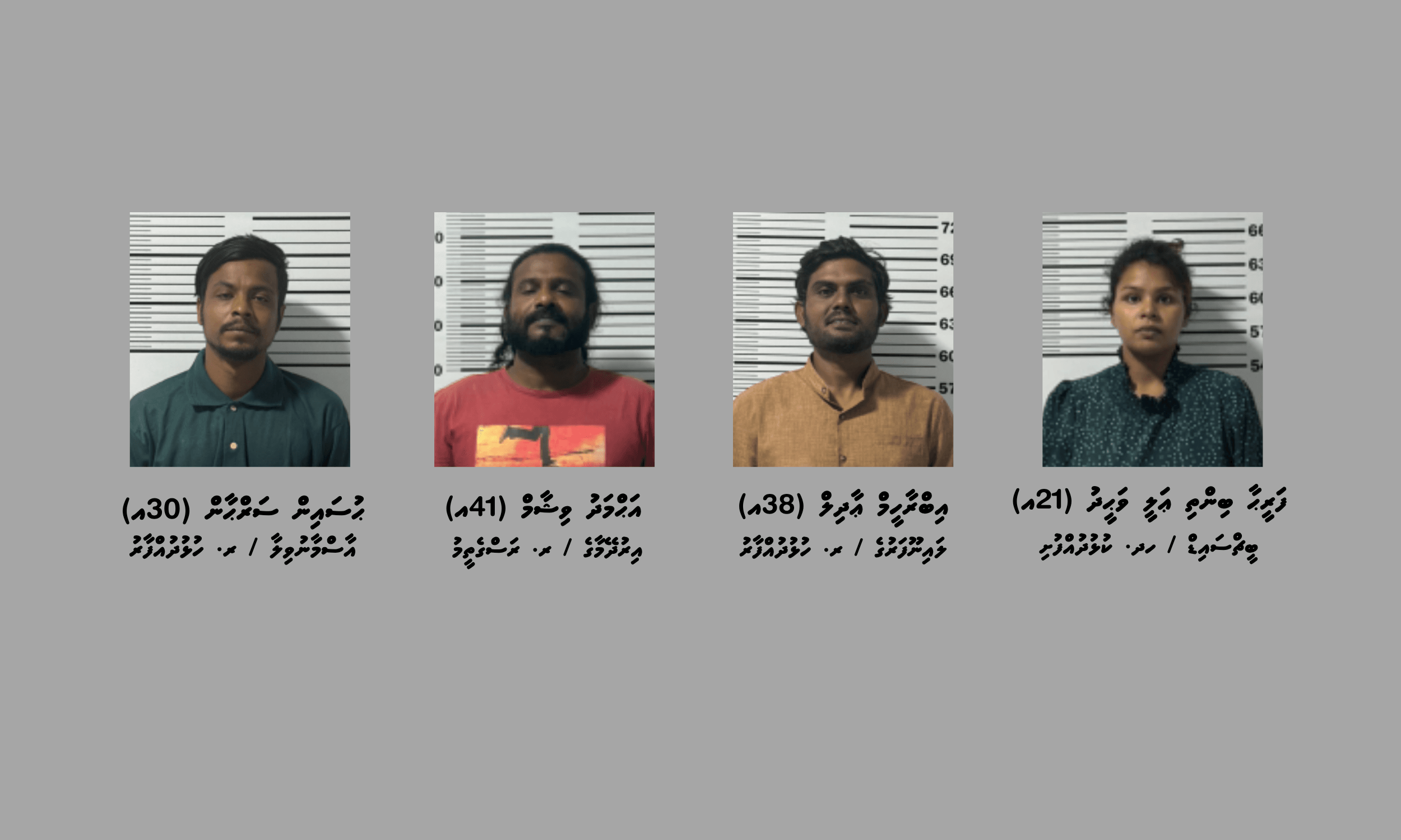 ފުލުހުން ހައްޔަރުކުރި 9 މީހުންގެ ތެރޭގައި ހިމެނޭ 5 މީހުން. ފޮޓޯ: ޕޮލިސް