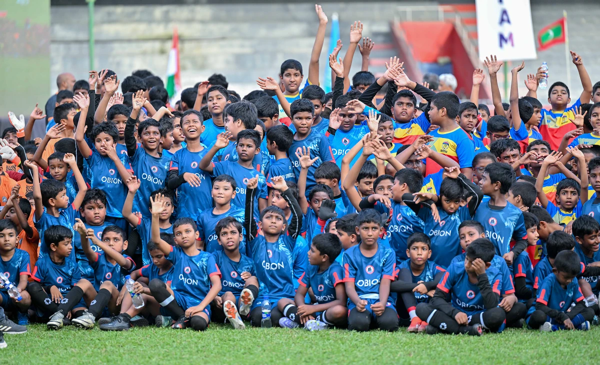 ފީފާގެ ރައީސްގެ ޝަރަފުގައި ގަލޮޅު ރަސްމީ ދަނޑުގައި ބޭއްވި ފުޓްބޯޅަ އެގްޒިބިޝަން މެޗުތަކުގެ ތެރެއިން. --ފޮޓޯ: ރައީސް އޮފީސް