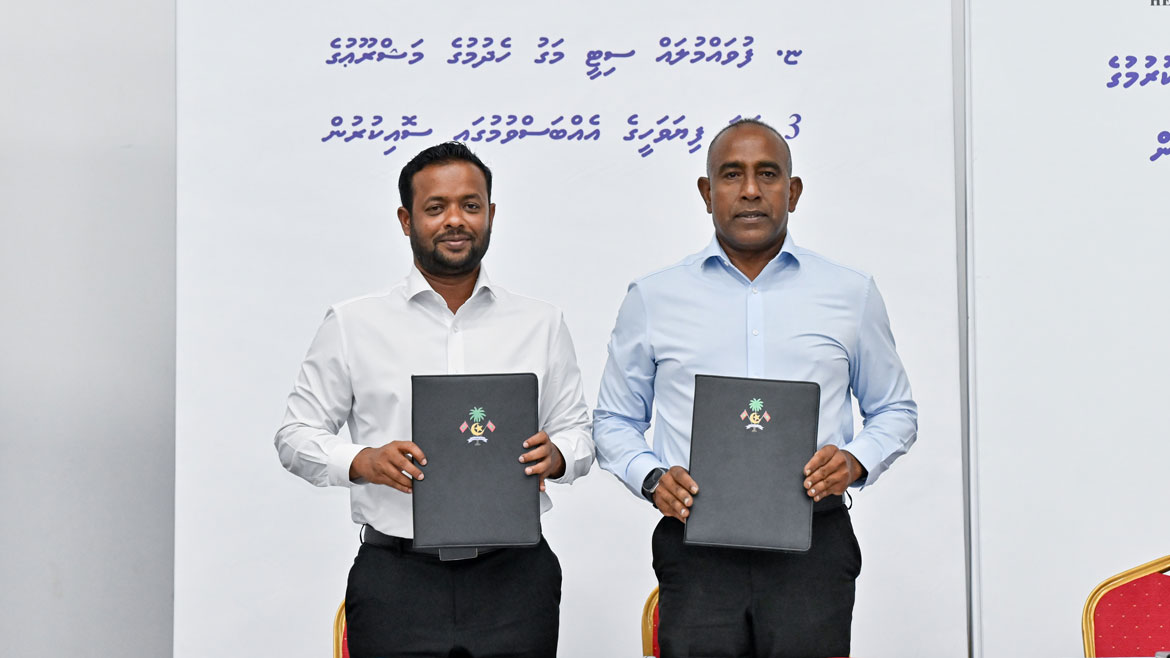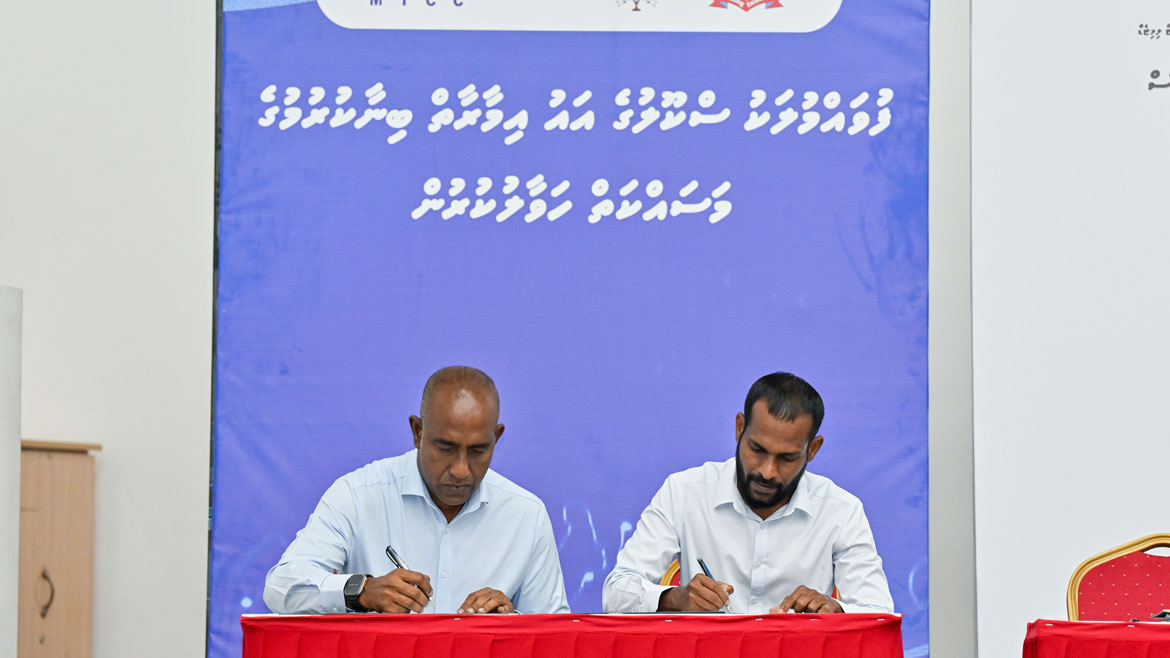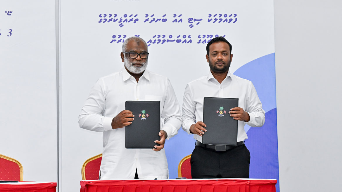 ފުވައްމުލަކި ސިޓީގެ އައު ބަނދަރު ތަރައްޤީ ކުރުމުގެ މަޝްރޫޢުގެ އެއްބަސްވުމުގައި ސޮއި ކުރުން- ފޮޓޯ: ރައީސް އޮފީސް