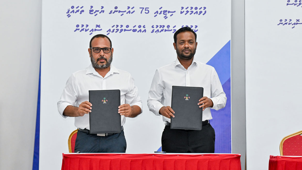 ފުވައްމުލަކު ސިޓީގައި 75 ހައުސިންގ ޔުނިޓް ތަރައްޤީ ކުރުމުގެ މަޝްރޫޢުގެ އެއްބަސްވުމުގައި ސޮއިކުރުން- ފޮޓޯ: ރައީސް އޮފީސް