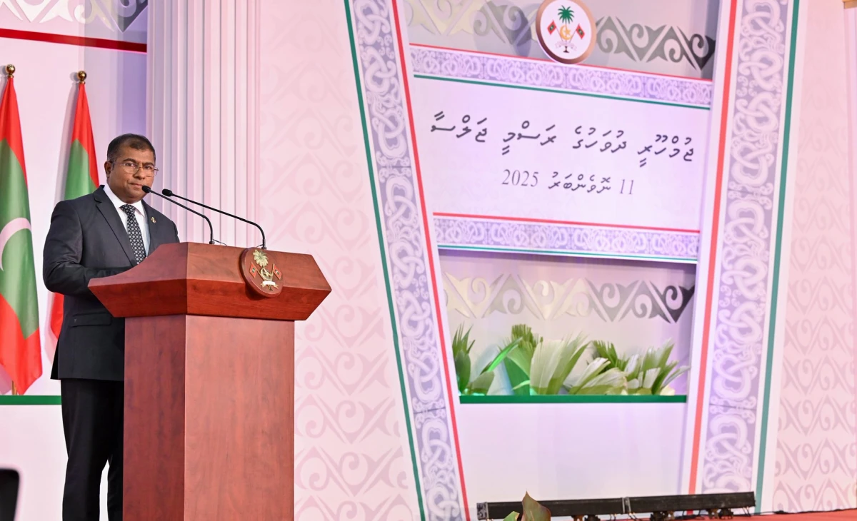 ޖުމްހޫރީ ދުވަހުގެ ޖަލްސާގައި ވަޒީރު އާދަމް ނަޞީރު އިބްރާހީމް ވާހަކަދައްކަވަނީ. ފޮޓޯ: ރައީސް އޮފީސް