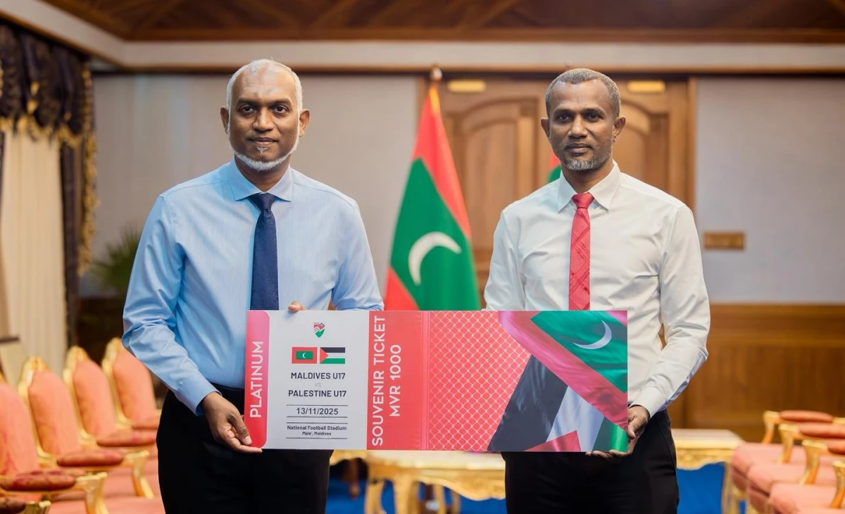 ރާއްޖެ އާއި ފަލަސްތީނުގެ ޒުވާން ޓީމު ކުޅޭ މެޗުގެ ސުވެނިއާ ޓިކެޓް ރައީސް ބައްލަވައިގެންފި